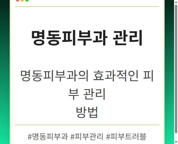 목차 명동피부과의 전문적인 피부 관리 방법 명동피부과 대표 시술 종류 피부 관리 후 주의사항 자가 피부 관리 팁 명동피부과를 선택해야