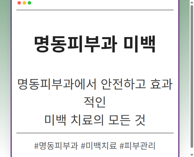 목차 명동피부과 미백 치료의 핵심 장점 미백 치료 전 반드시 확인해야 할 3가지 성공적인 미백을 위한 주별 케어 플랜 명동피부과