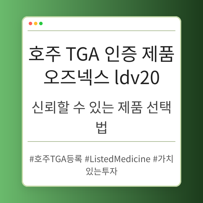 호주 TGA 인증 제품 오즈넥스 ldv20의 중요성에 대해 알아보며, 신뢰할 수 있는 건강 제품을 선택하는 것이 얼마나 중요한지를 이야기합니다. 호주...